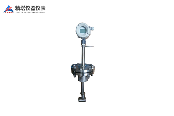 按國際標準化組織IS07145(在環形截面封閉管道中的流體流量測定—在截面一點的速度測量法),采用埋入壓電晶體的渦街測速探頭,插入大口徑工業管道內,將卡門旋渦頻率轉換為與流量成正比的電流或電壓脈沖信號或4~20mADC電流信號。